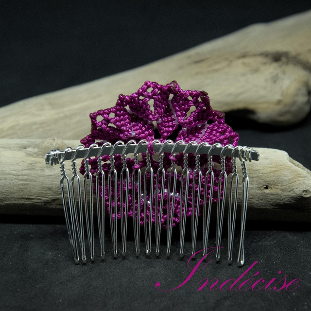 Peigne décoratif de cheveux rose fushia avec perles cristal blanc, diamètre : 5 cm environ - Création UNIQUE Indecise