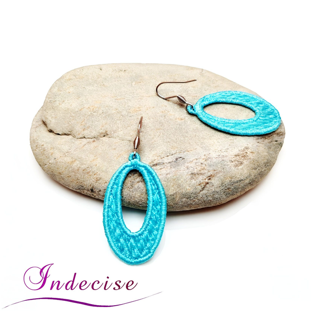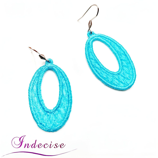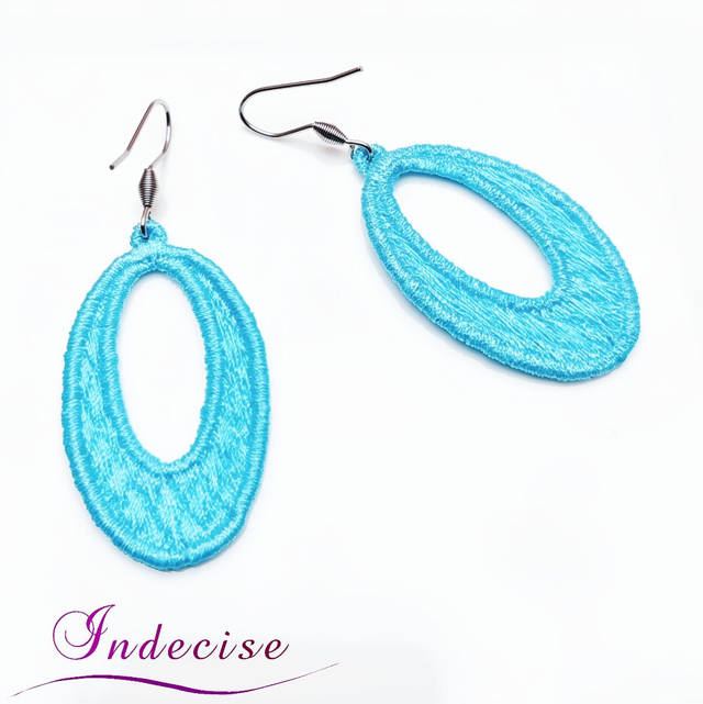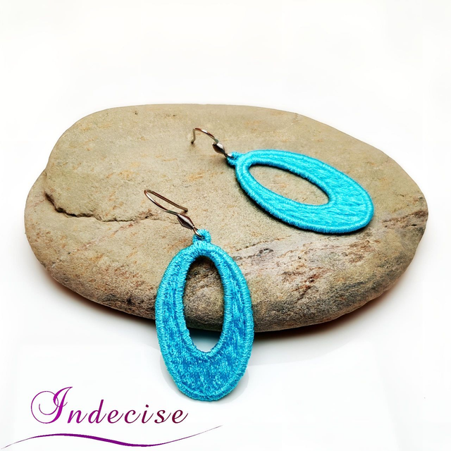 Boucles d'oreilles bleu ciel, broderie en machine - Créations issues de l'artisanat français par Indecise