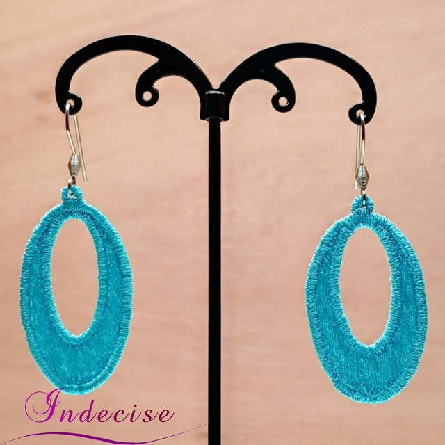Boucles d'oreilles bleu ciel, broderie en machine - Création indecise