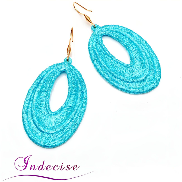 Boucles d'oreilles bleu, broderie en machine - Création indecise