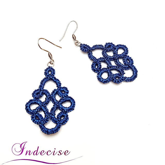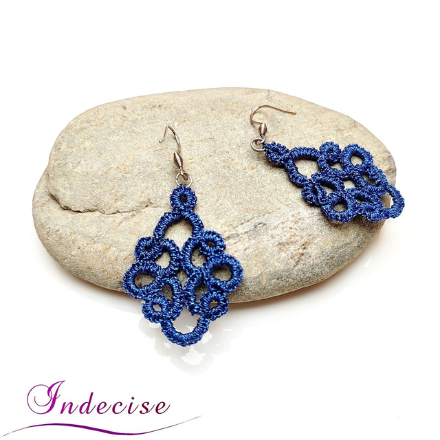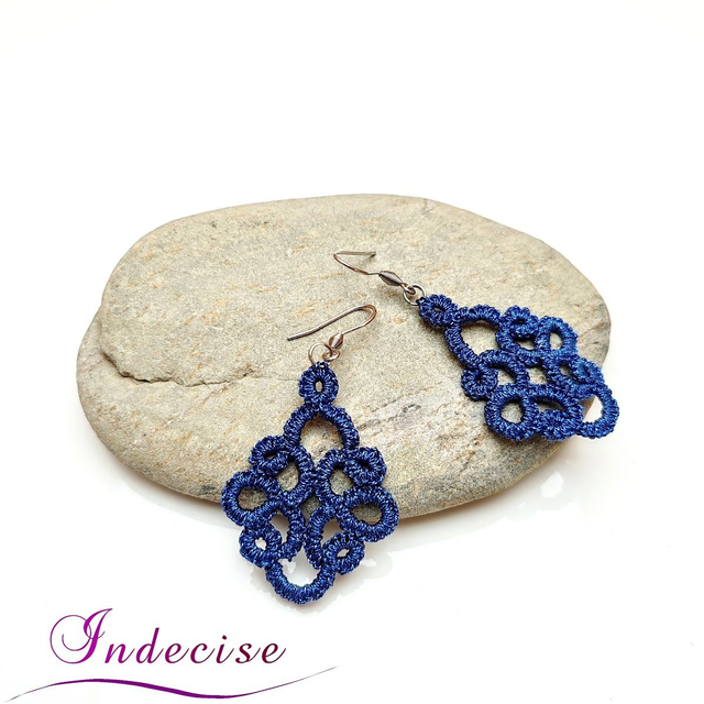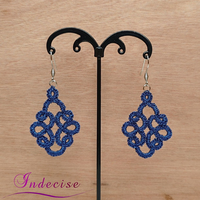 Boucles d'oreilles bleu dur métal, crochets en acier 316L - Créations artisanales Indecise