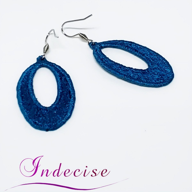 Boucles d'oreilles bleu métal, broderie en machine - Créations issues de l'artisanat français par Indecise