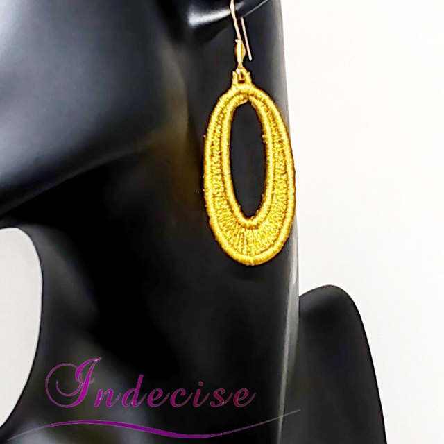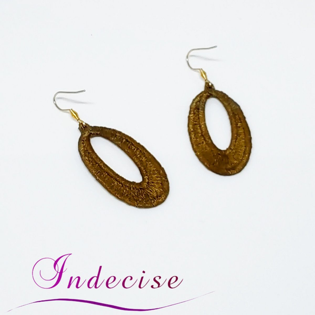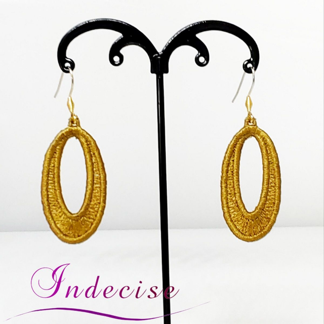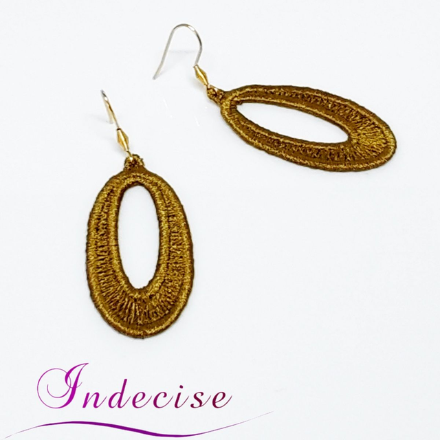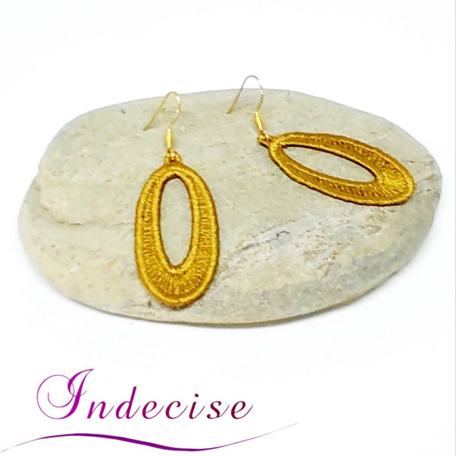 Boucles d'oreilles couleur or, broderie en machine - Création indecise