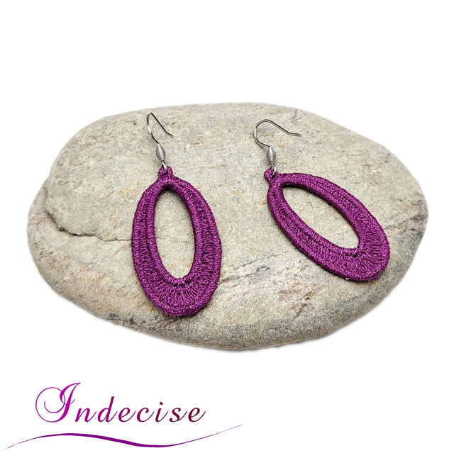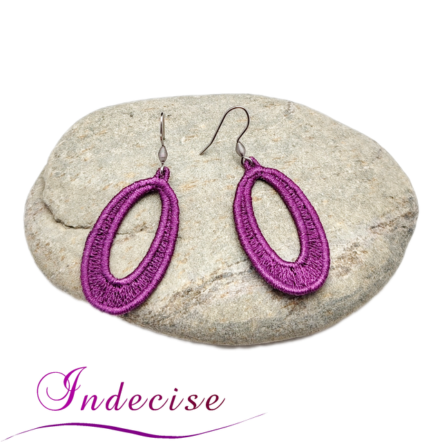 Boucles d'oreilles couleur prune, broderie en machine - Création indecise