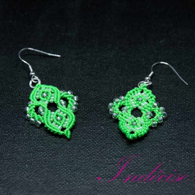 Boucles d'oreilles en macramé vert avec perles cristal irisé - Créations UNIQUES Indecise - Artisanat français