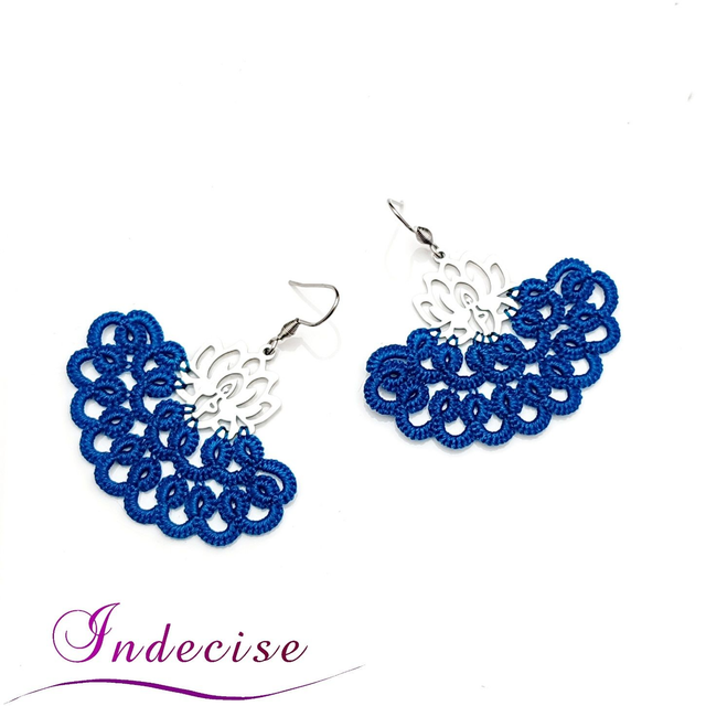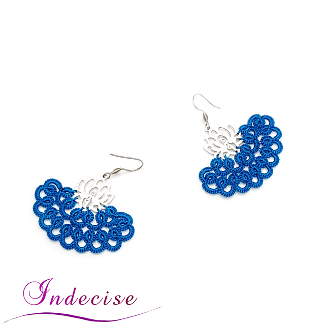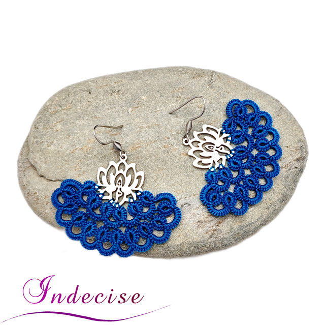 En dentelle à l'aiguille (frivolité), avec crochets en acier 316L (hypoallergénique, inoxydable et sans nickel)