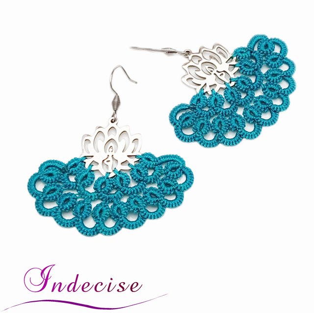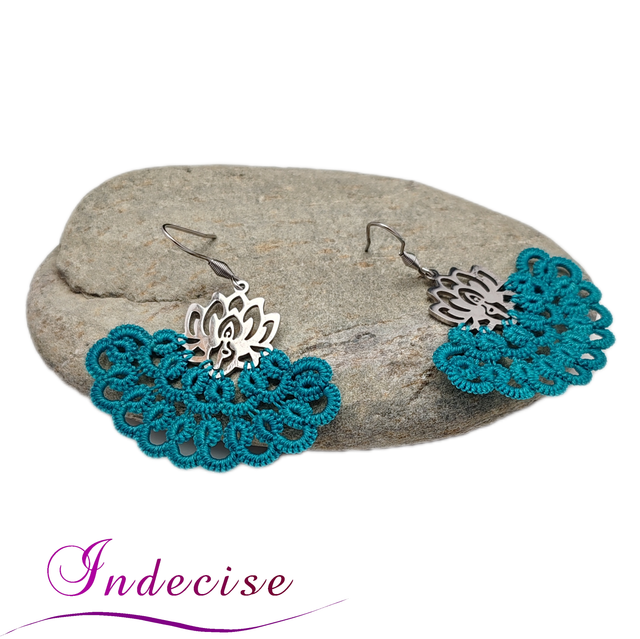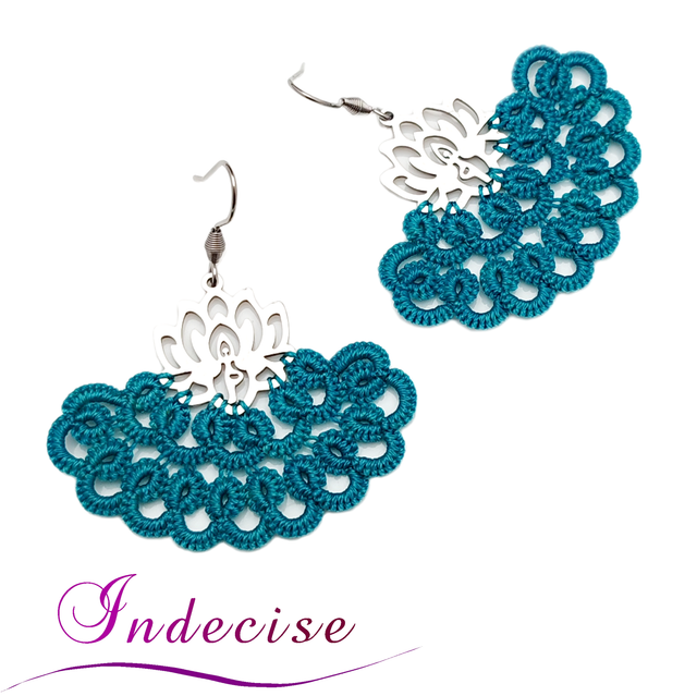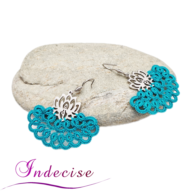 En dentelle à l'aiguille (frivolité), avec crochets en acier 316L (hypoallergénique, inoxydable et sans nickel)
