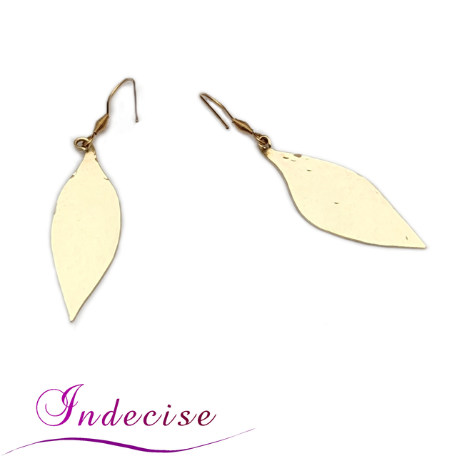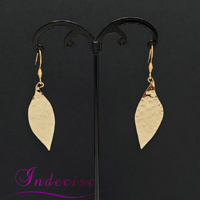 Boucles d'oreilles feuilles en laiton martelé - Création artisanale Indecise