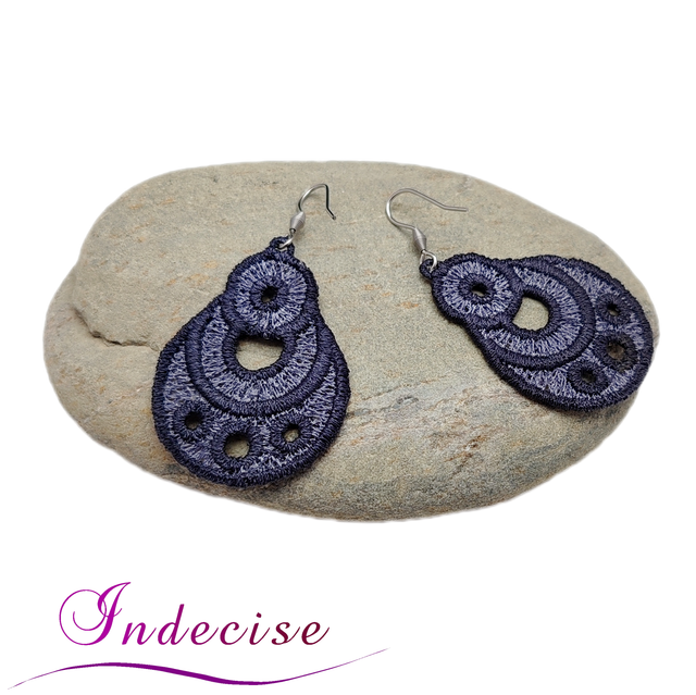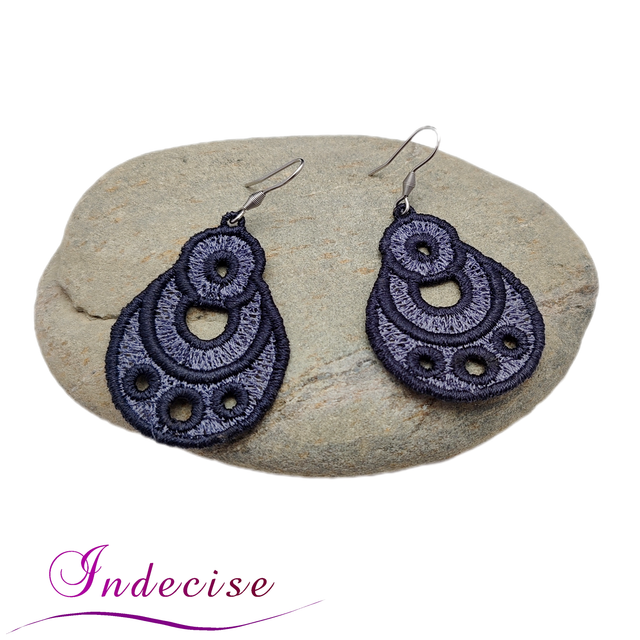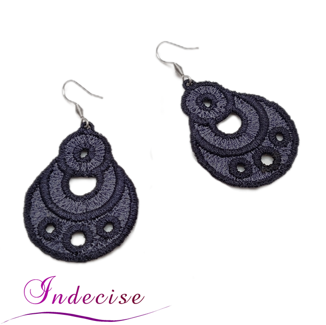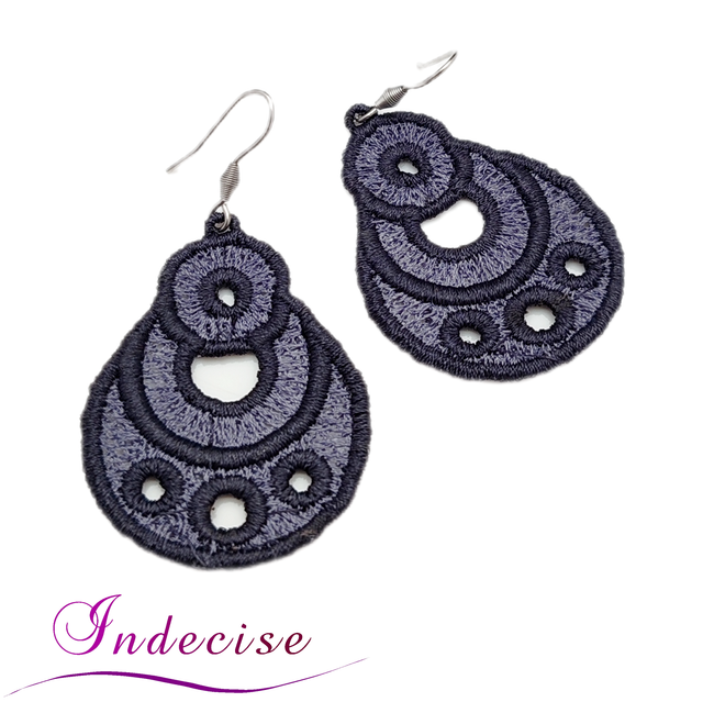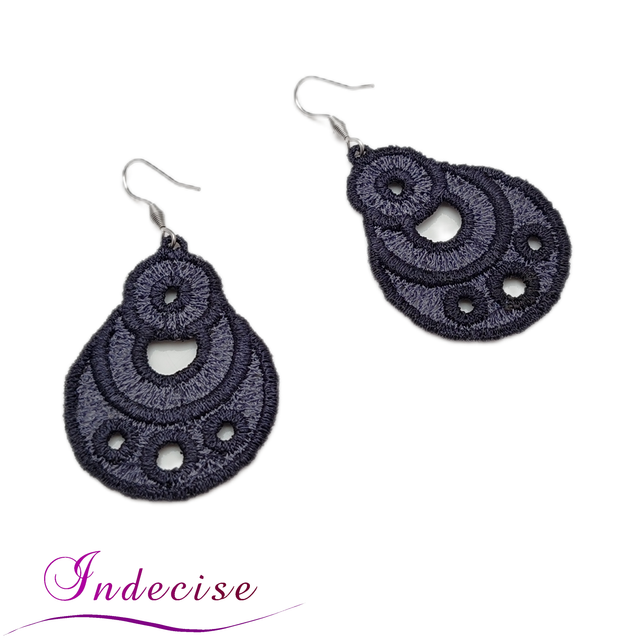 Boucles d'oreilles gris anthracite et gris acier, broderie en machine - Créations issues de l'artisanat français par Indecise