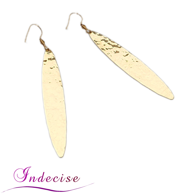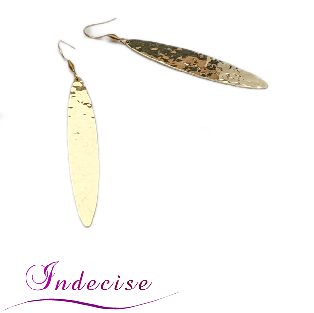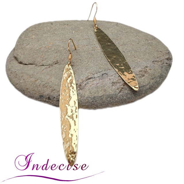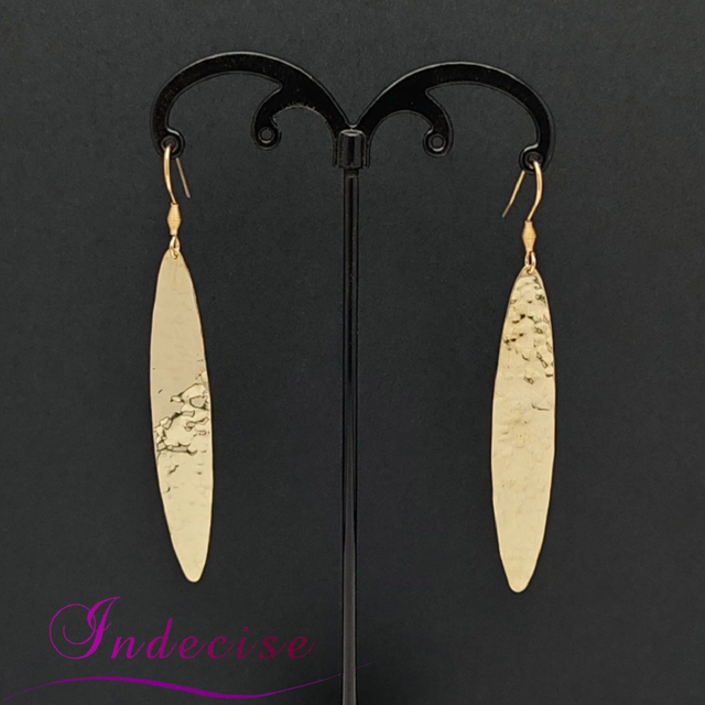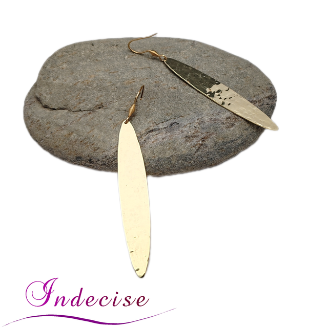 Boucles d'oreilles longues en laiton martelé - Création artisanale Indecise