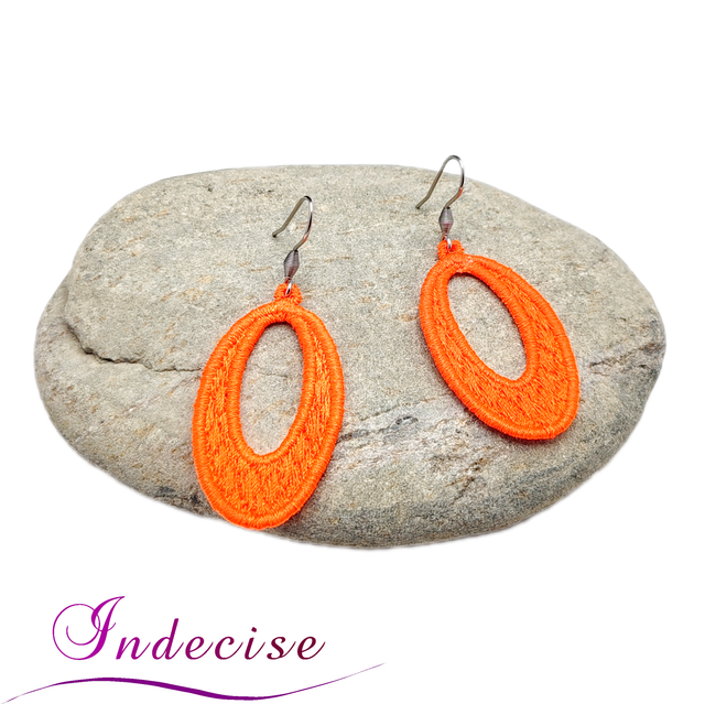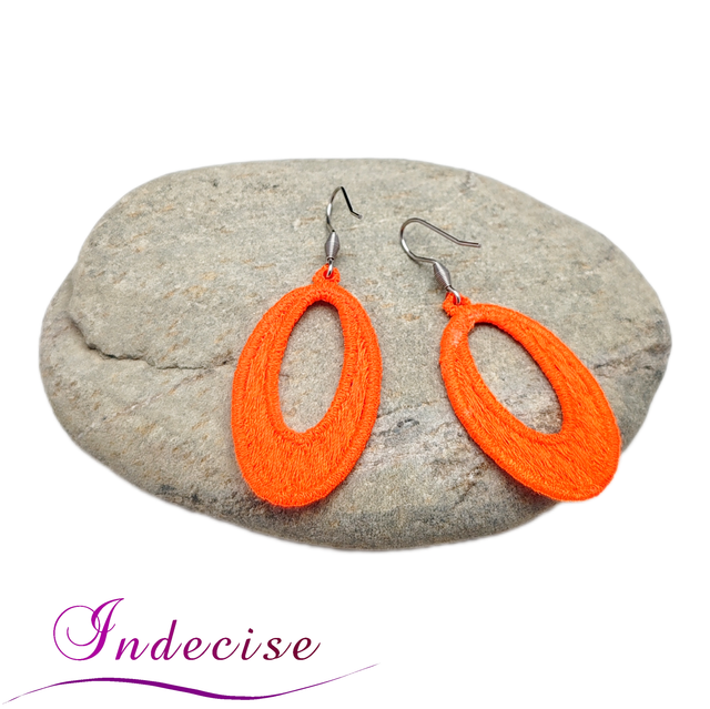 Boucles d'oreilles orange vif, broderie en machine - Créations issues de l'artisanat français par Indecise