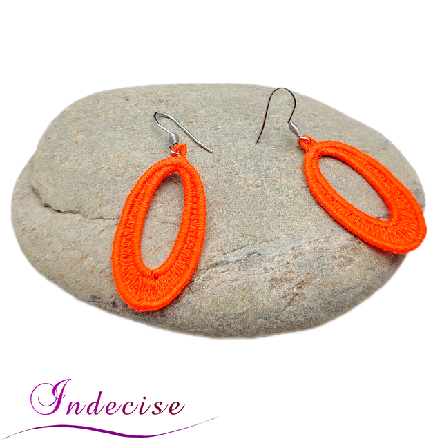 Boucles d'oreilles orange vif, broderie en machine - Créations issues de l'artisanat français par Indecise
