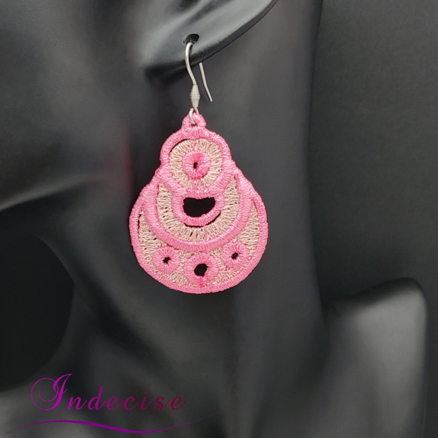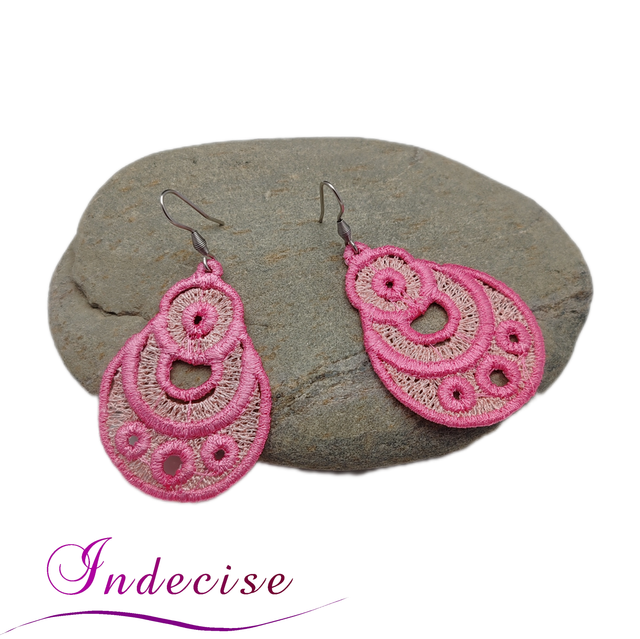 Boucles d'oreilles rose et rose poudré, broderie en machine - Créations issues de l'artisanat français par Indecise