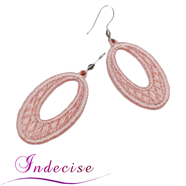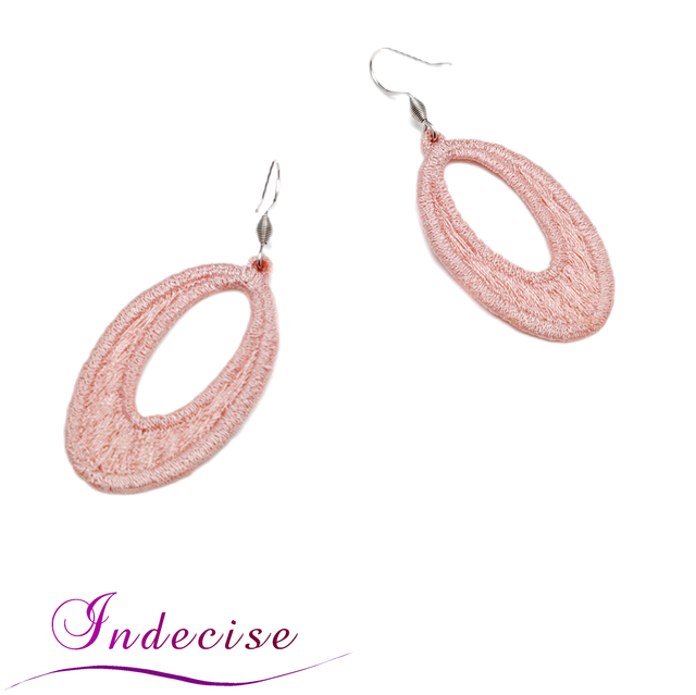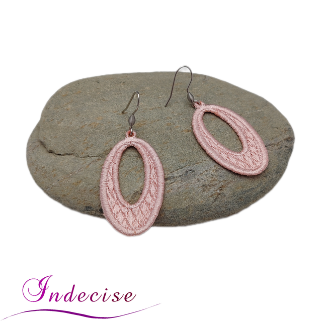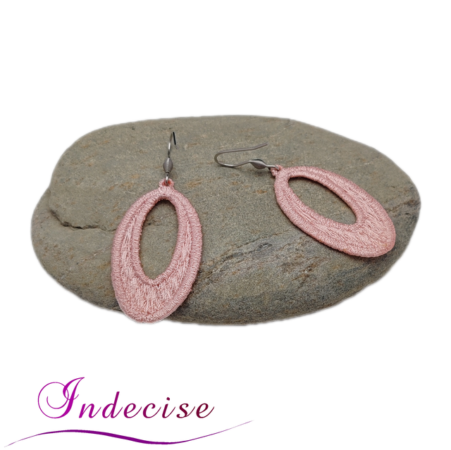 Boucles d'oreilles rose poudré, broderie en machine - Créations issues de l'artisanat français par Indecise