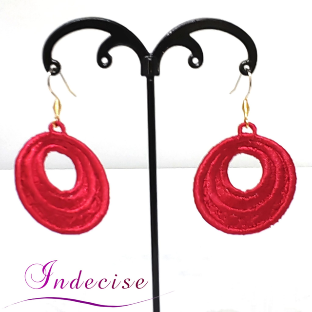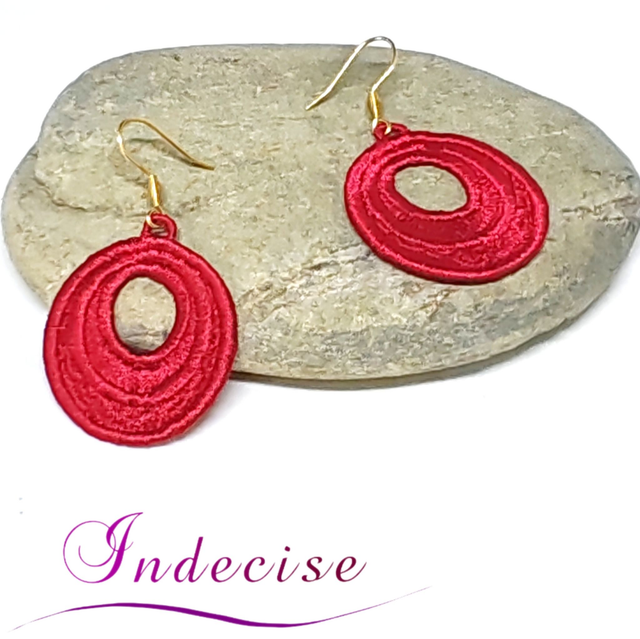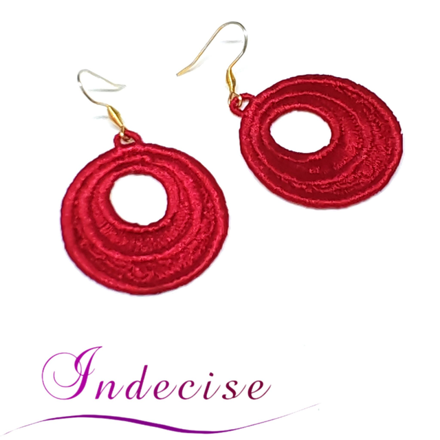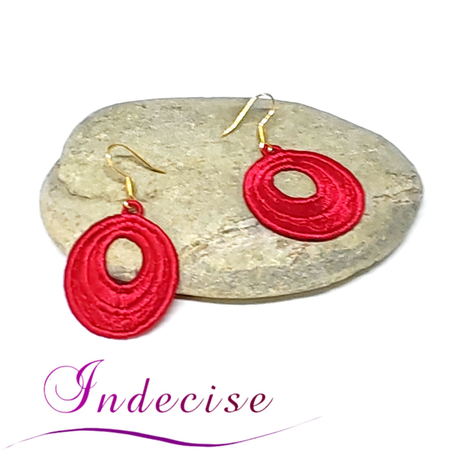 Boucles d'oreilles rouge vif - broderie en machine - Créations Indecise artisanat français