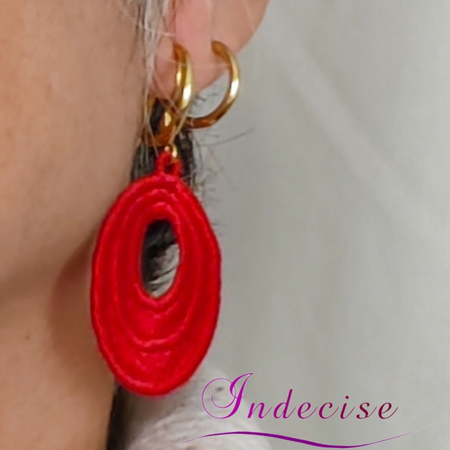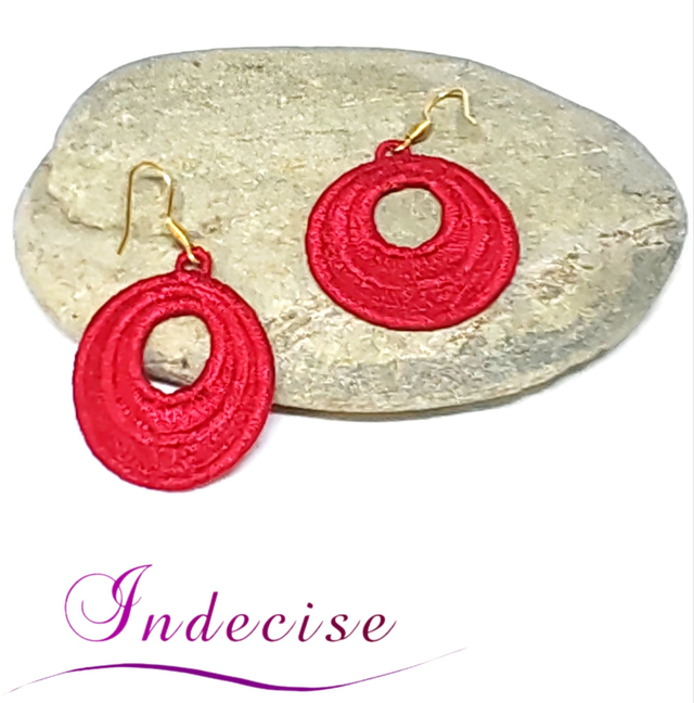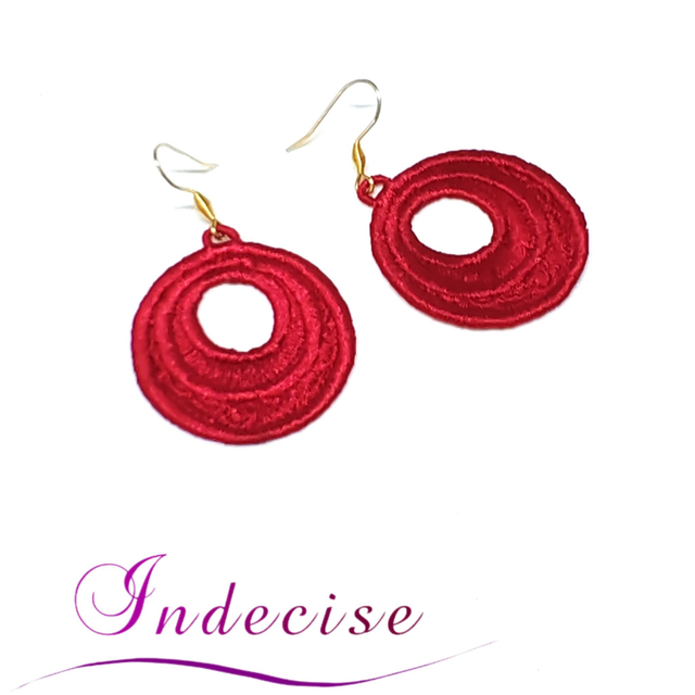 Boucles d'oreilles rouges vif en broderie en machine - Création indecise