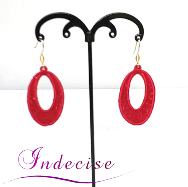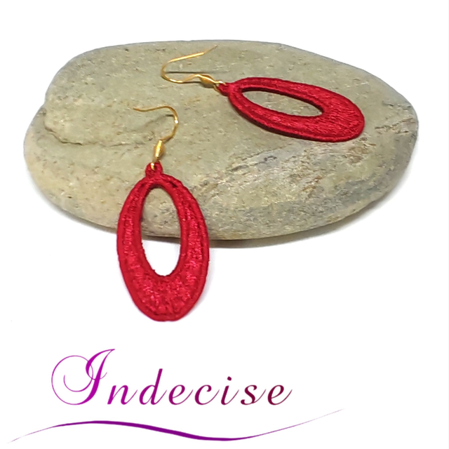 Boucles d'oreilles rouge vif broderie en machine