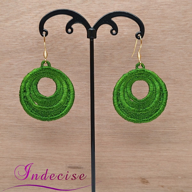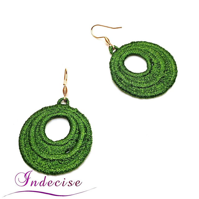 Boucles d'oreilles vert kaki clair - broderie en machine - Créations Indecise artisanat français
