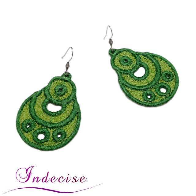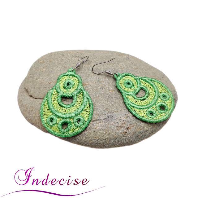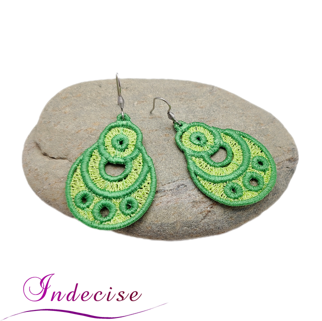 Boucles d'oreilles vert prairie et vert anis, broderie en machine - Créations issues de l'artisanat français par Indecise
