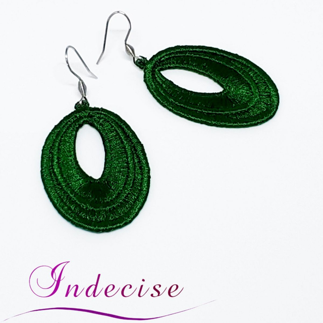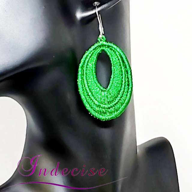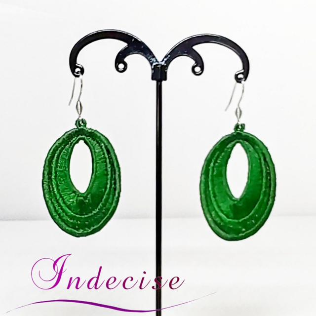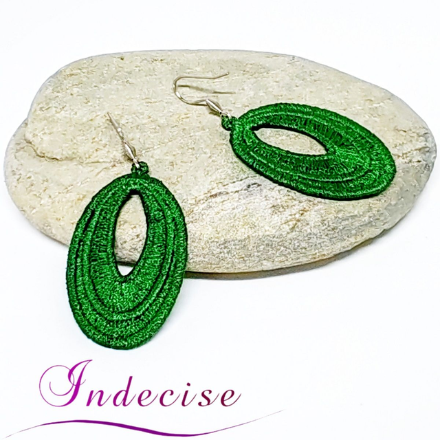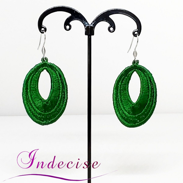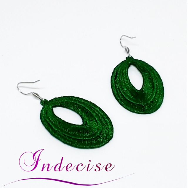 Boucles d'oreilles vert sapin, broderie en machine - Création Indecise