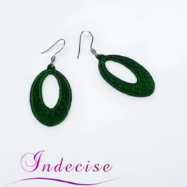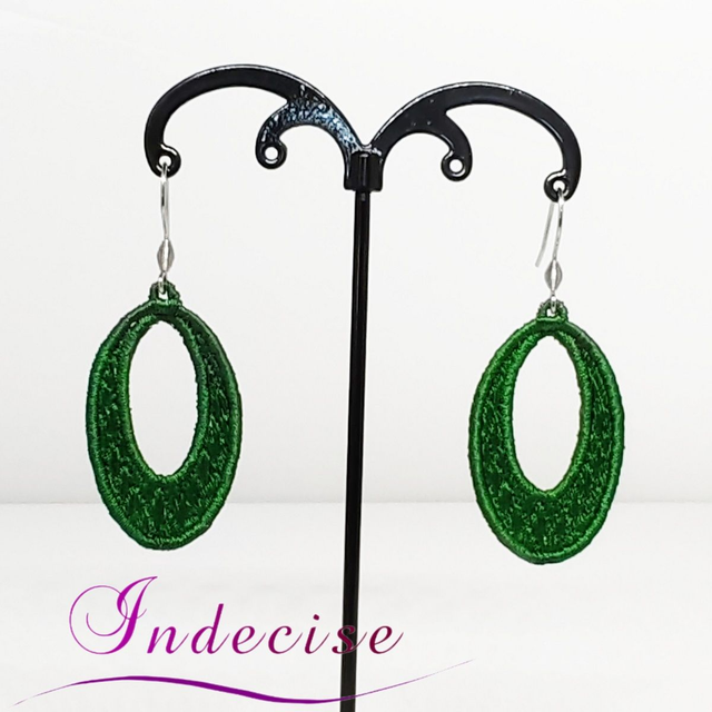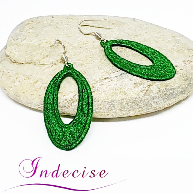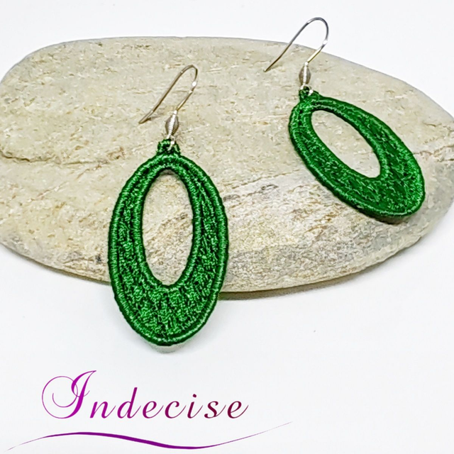 Boucles d'oreilles vert sapin, broderie en machine - Création indecise