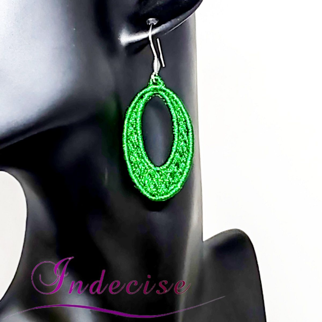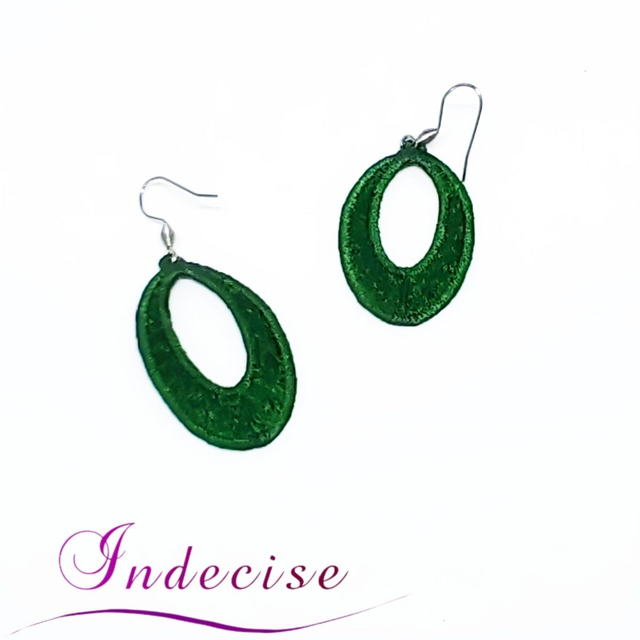Boucles d'oreilles vert sapin, broderie en machine - Créations issues de l'artisanat français par Indecise