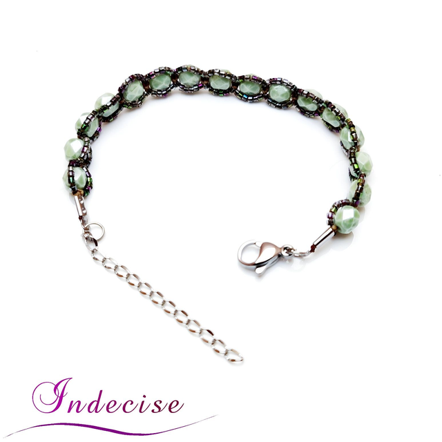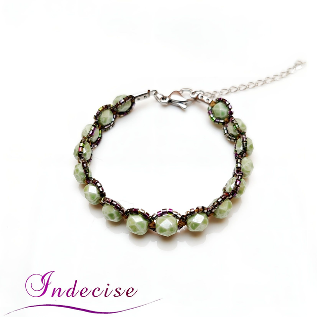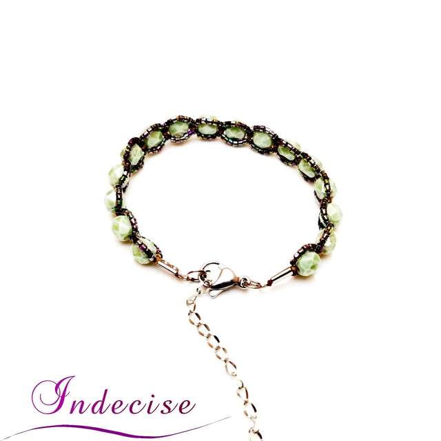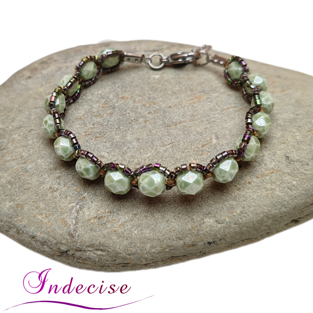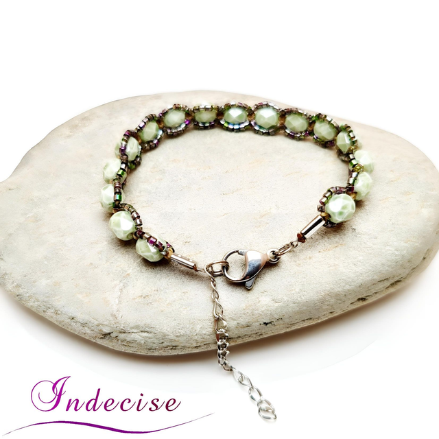 Bracelet en perles facettées en verre (couleur vert clair) de bohème de grande qualité et perles de verre irisées.