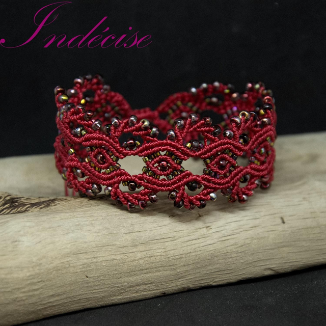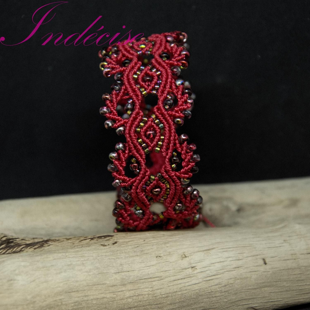 Bracelet ajustable en macramé rouge avec perles cristal rouge et cuivre irisé - Création UNIQUE Indecise
