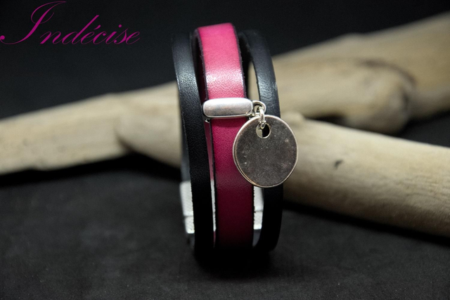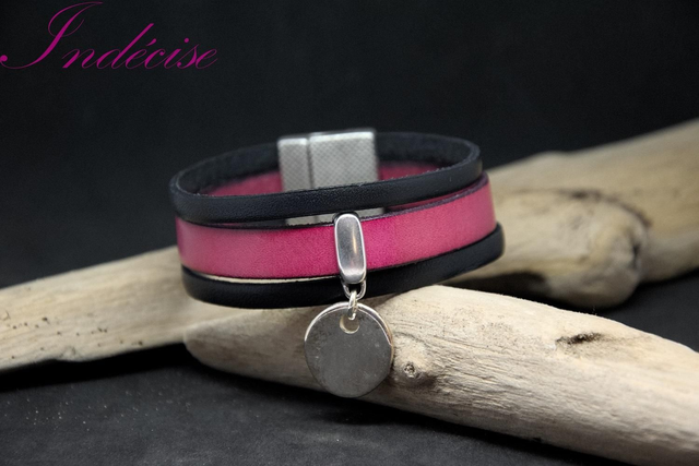Bracelet en cuir fushia et noir