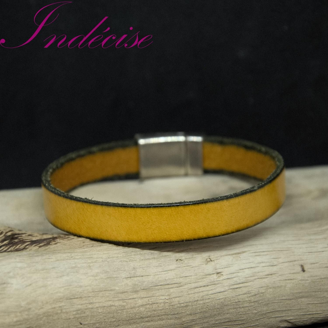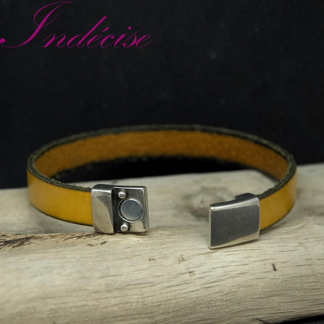 Bracelet en cuir jaune avec fermoir aimanté en zamak (inoxydable, hypoallergénique) - Création UNIQUE Indecise