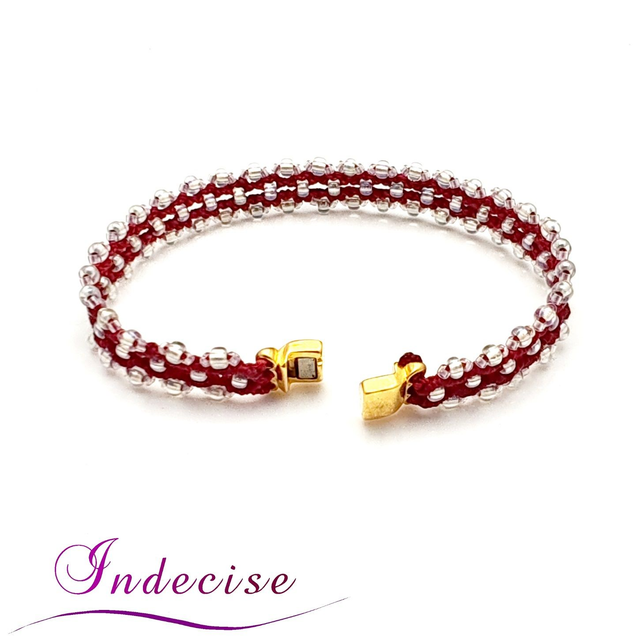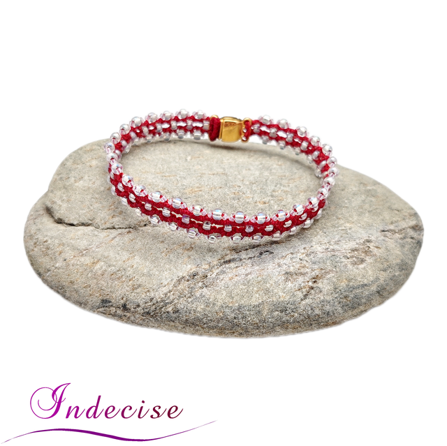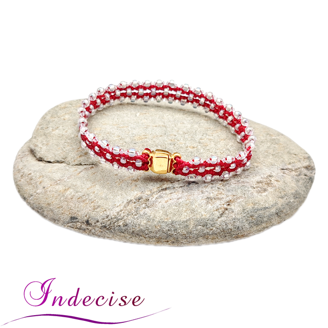 Bracelet en macramé rouge et cristal avec fermoir aimanté - Création Indecise