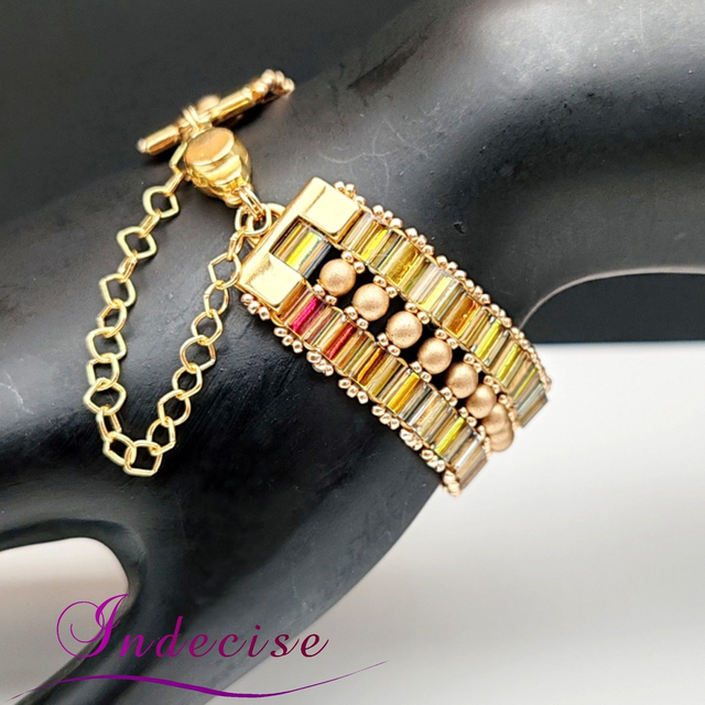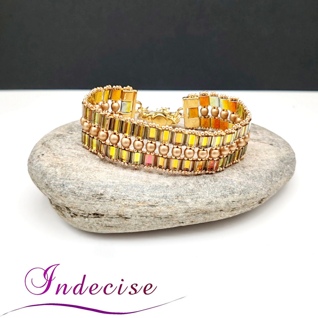 Bracelet en perles japonaises irisées et or