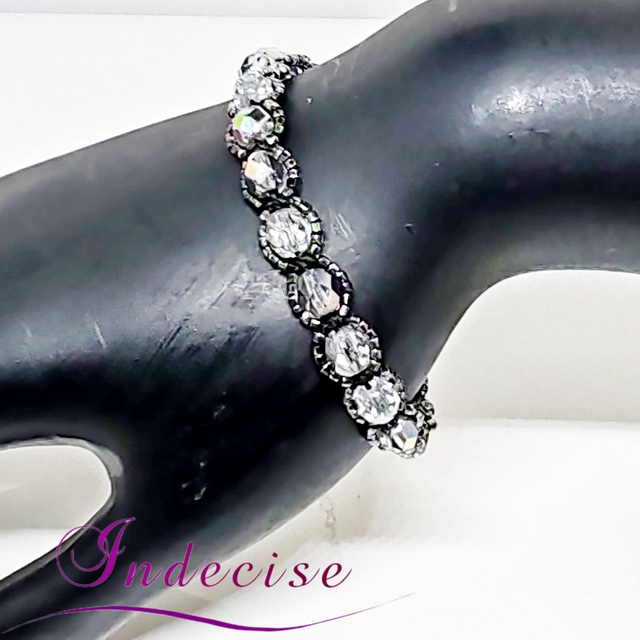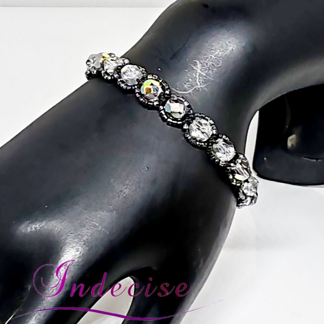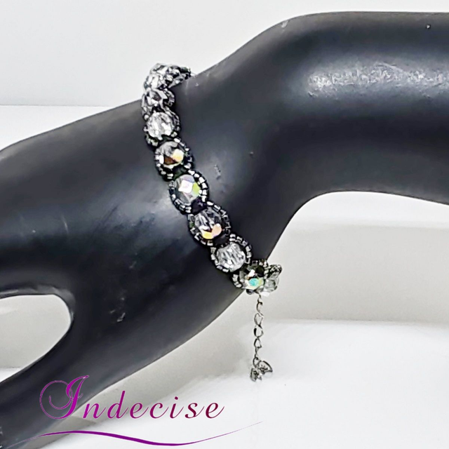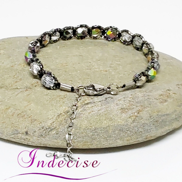 Bracelet perles de verre irisé argent et perles noir irisé, fermoir acier - Création Indecise