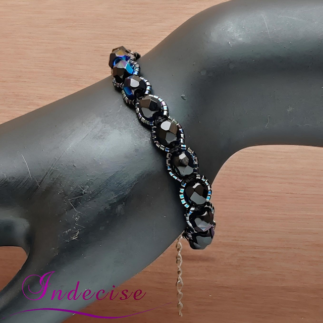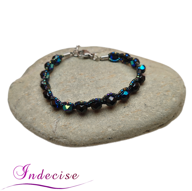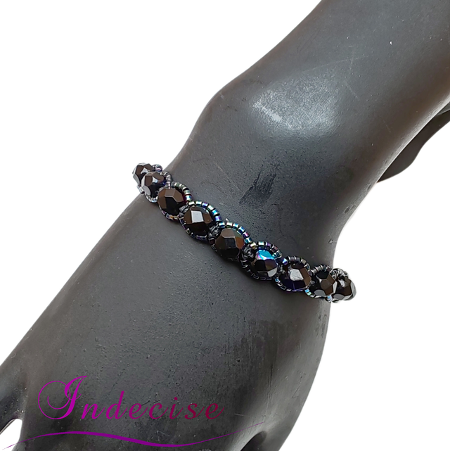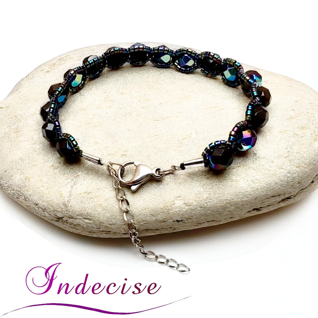 Bracelet en perles de verre noir irisé - Création issue de l'artisanat français par Indecise