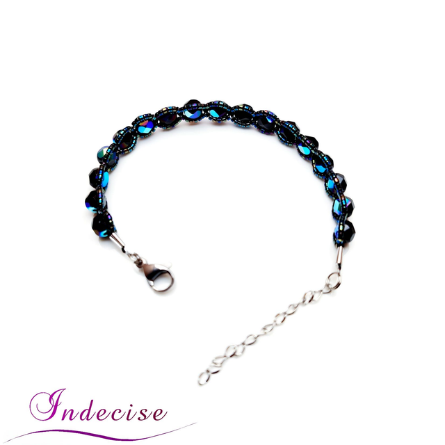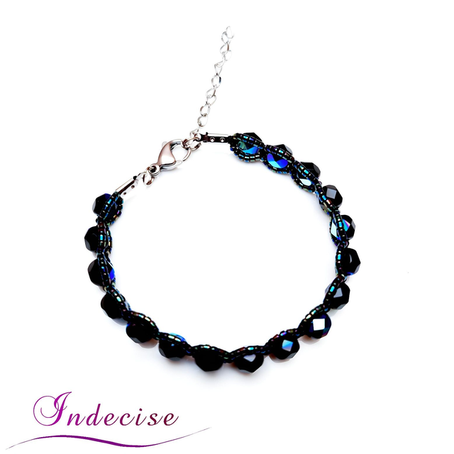 Bracelet perles de verre noir irisé, fermoir acier - Création Indecise
