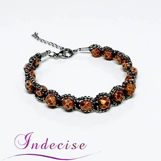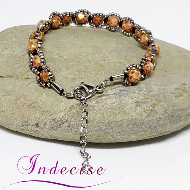 Bracelet perles de verre ocre et perles argent, fermoir acier - Création Indecise