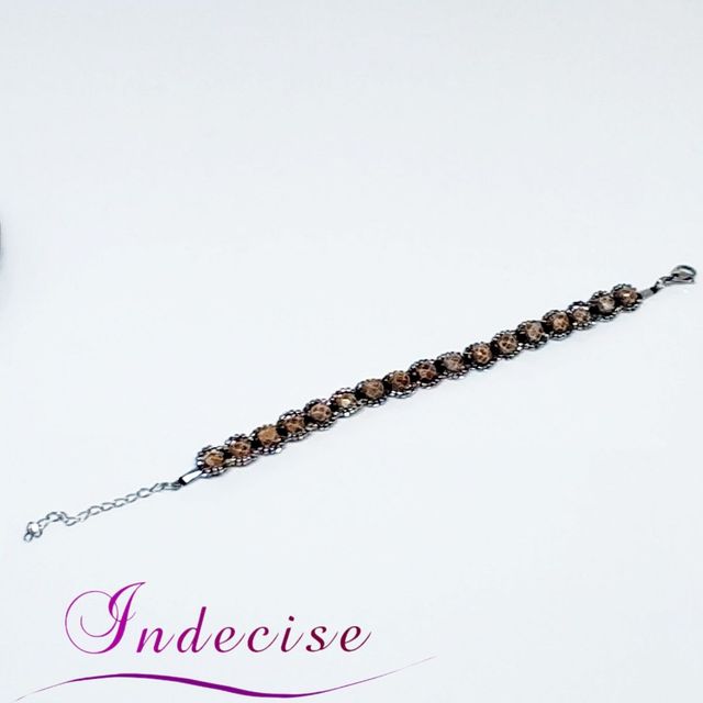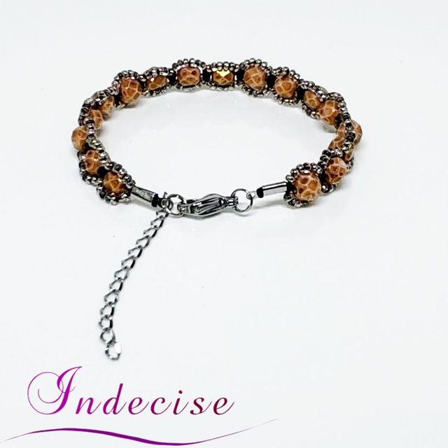 Bracelet en perles de verre ocre et perles argentées - Création issue de l'artisanat français par Indecise