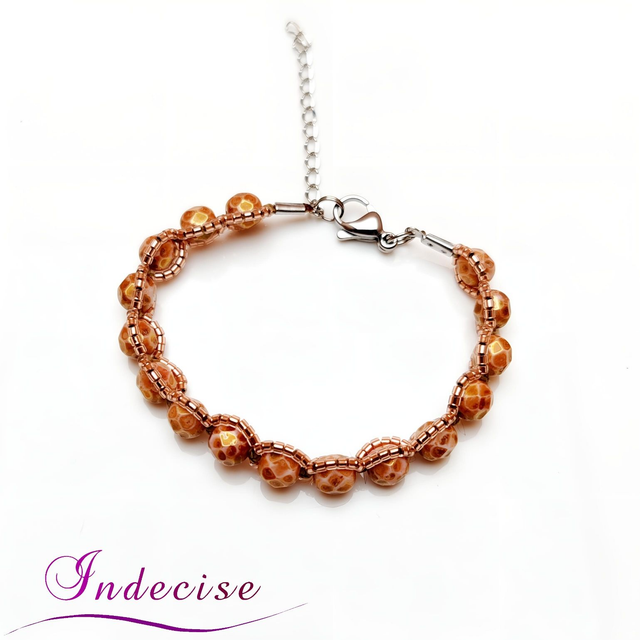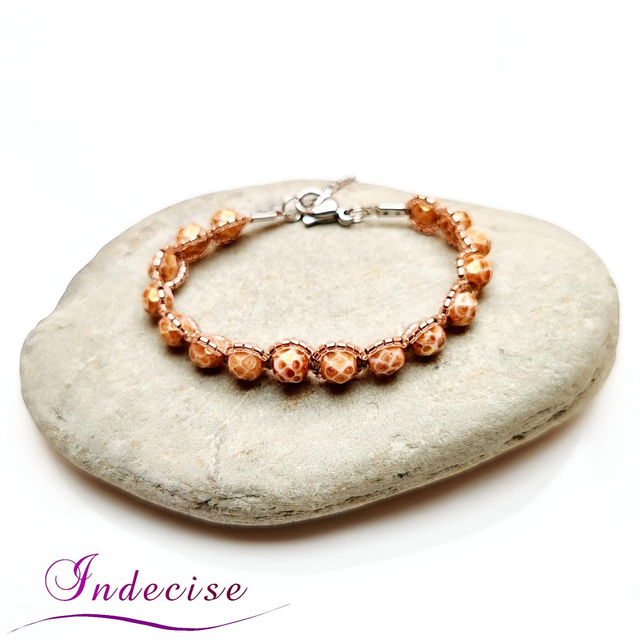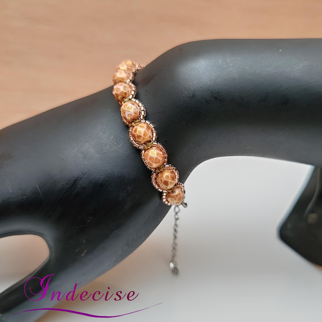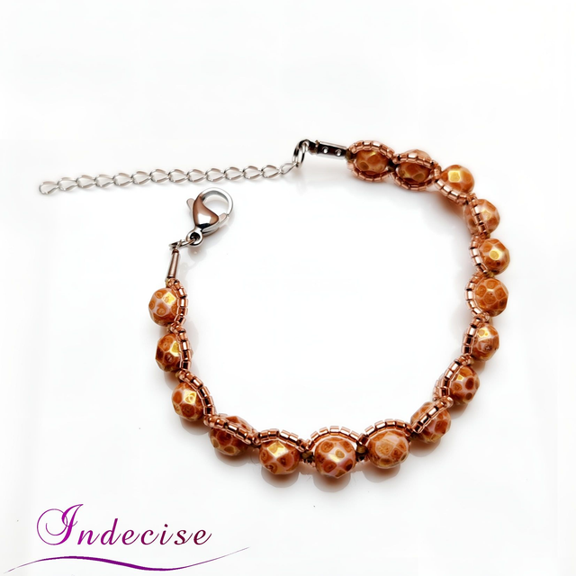 Bracelet en perles de verre ocre et perles cuivre - Création issue de l'artisanat français par Indecise