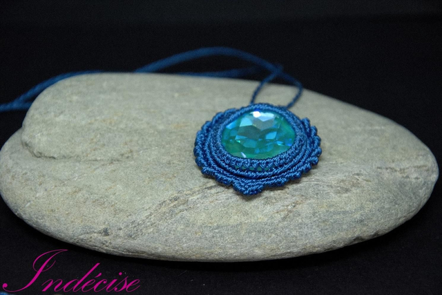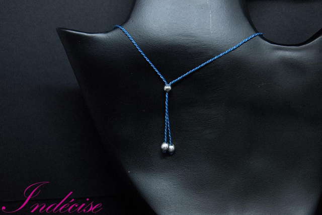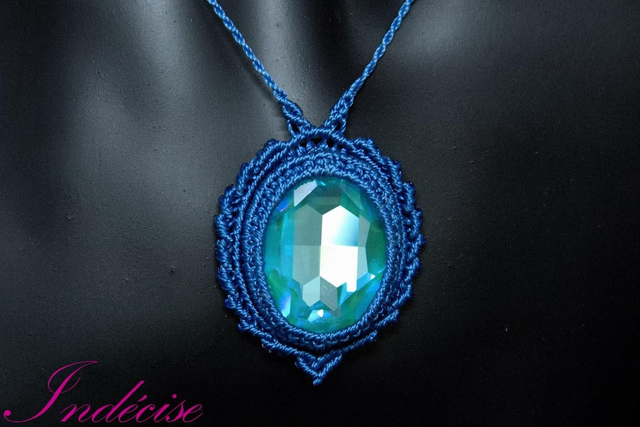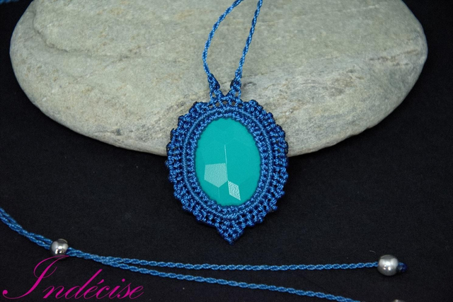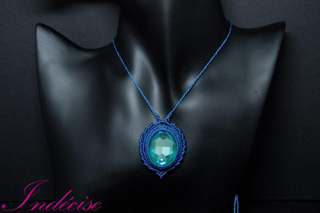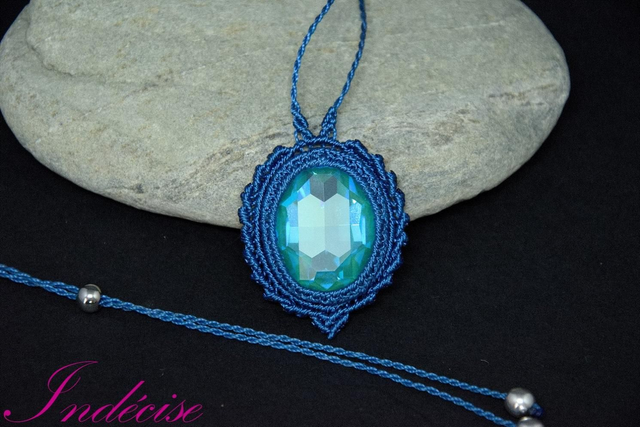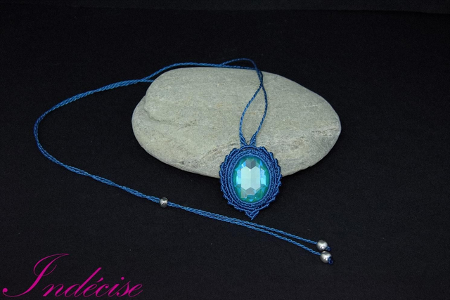 Collier bleu ajustable, cristal bleu et macramé, finition acier inoxydable