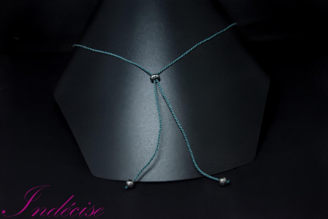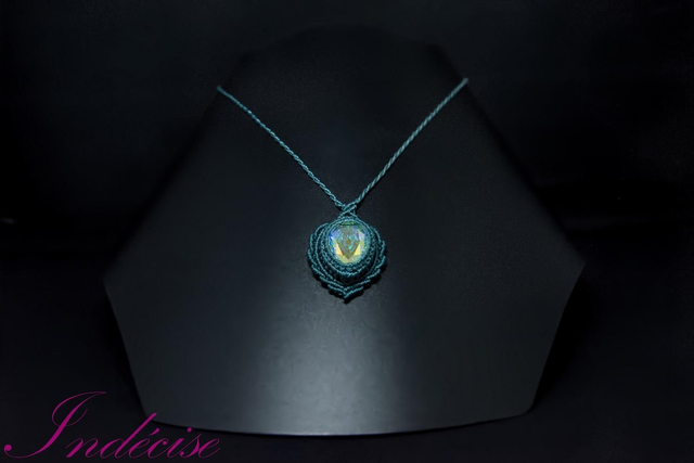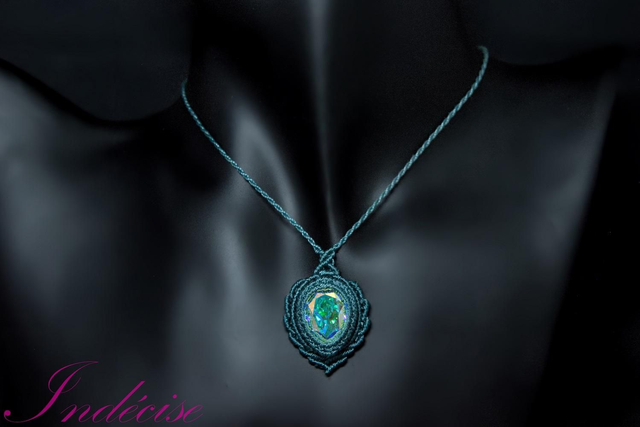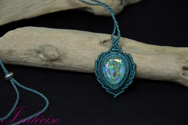 Collier Cristal serti en macramé bleu canard