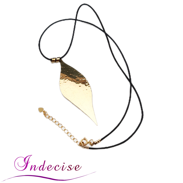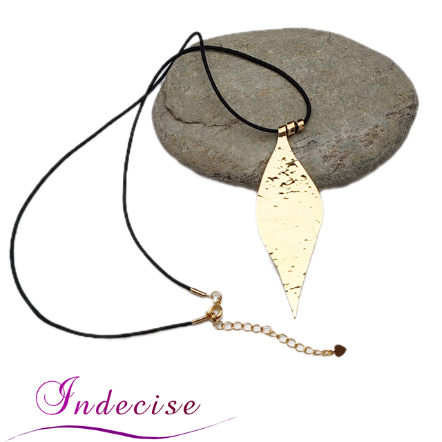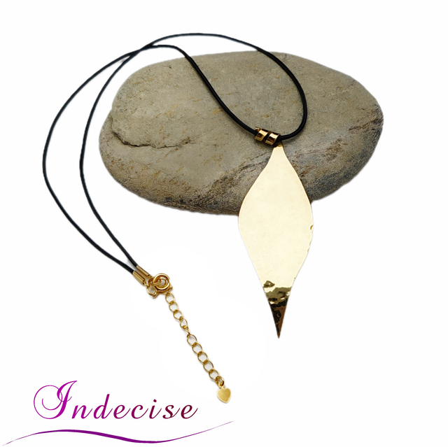 Collier feuille en laiton couleur or - Création artisanale par Indecise