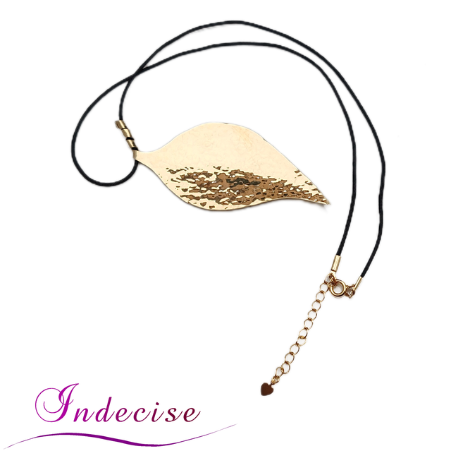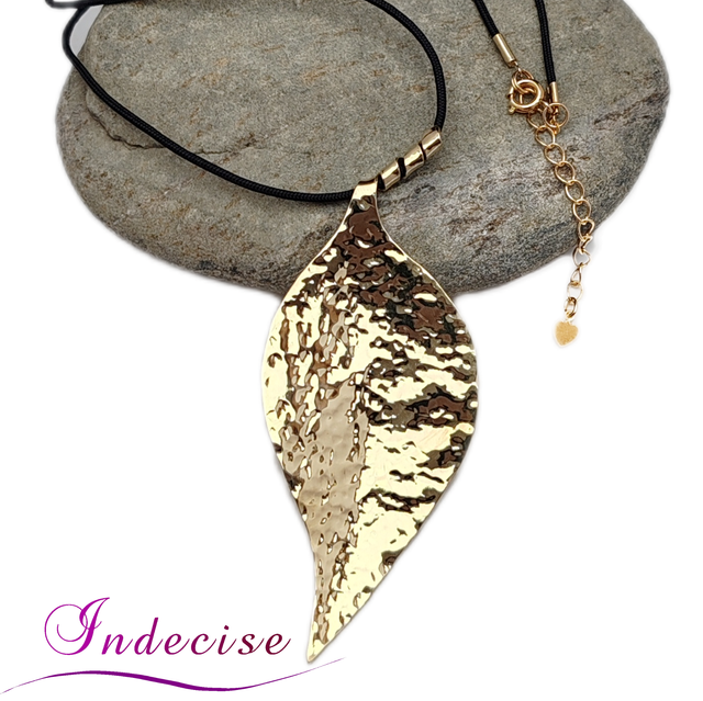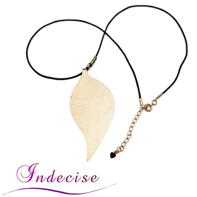 Collier grande feuille en laiton couleur or - Création artisanale par Indecise