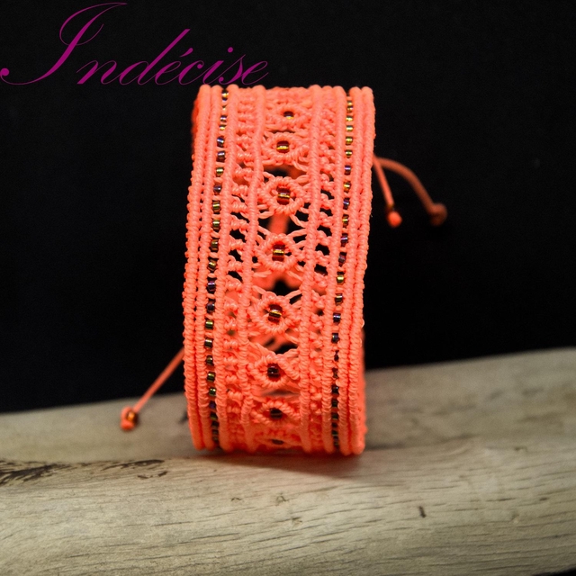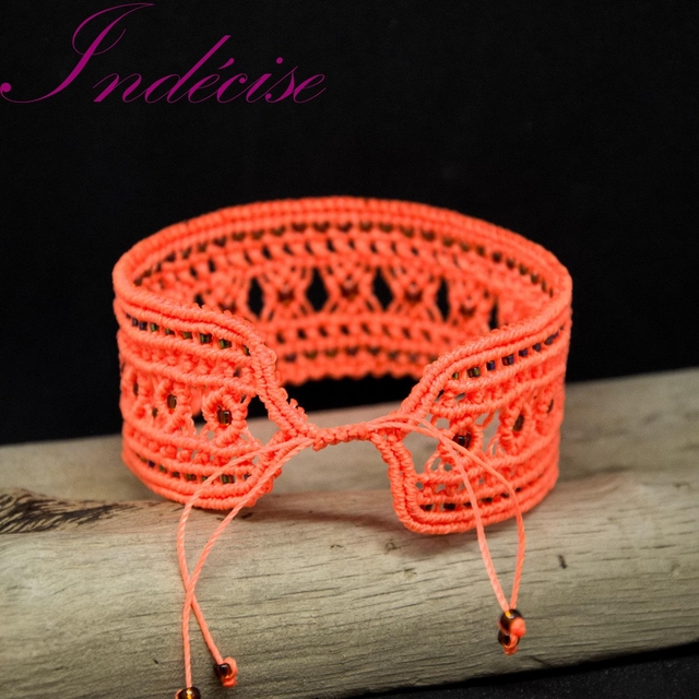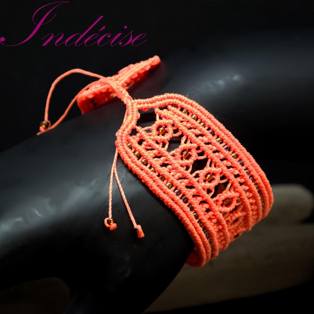 Manchette en macramé orange, ajustable