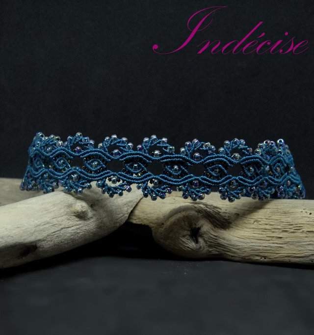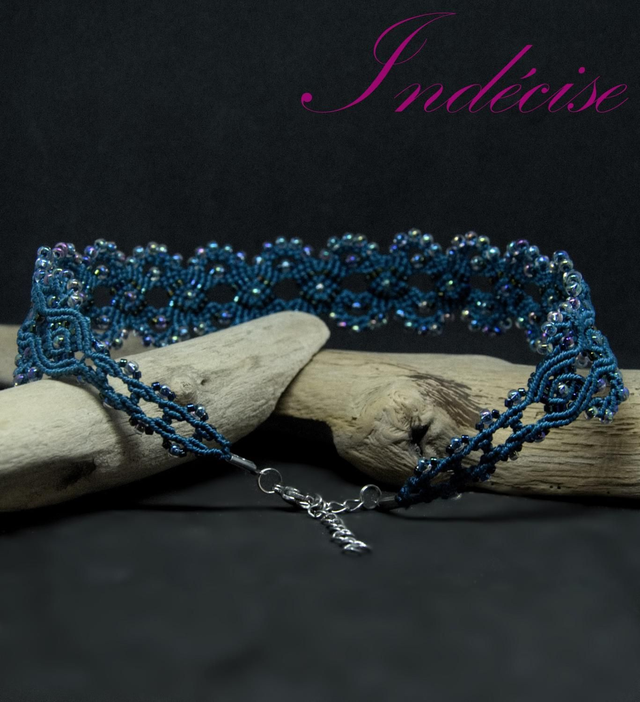 Ras de cou, en macramé bleu canard